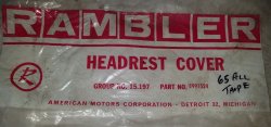 | 63 American/Classic/Ambassador? Front Seat Back Headrest Upholstery | 3503856 | NOS, $29 |  |