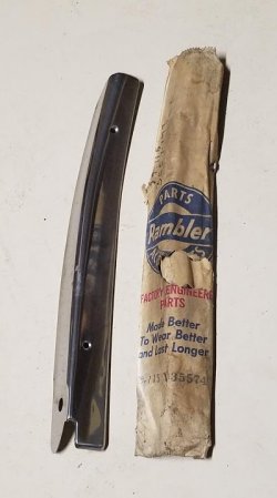 | 56 Rambler; 57-60 Rambler Six/Rebel/Ambassador Front Door Scuff Plate, (28-1/2 x 2-5/8") | 3411370 | Used, $24 |  |