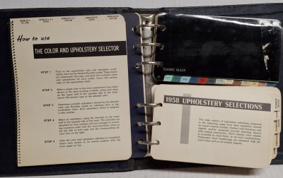 | 58-18 | 1958 Rambler Salesman's Colors, Upholsteries, Accessories Book, Actual Samples of Upholstery and Color Chips, Excellent used condition ![]() |